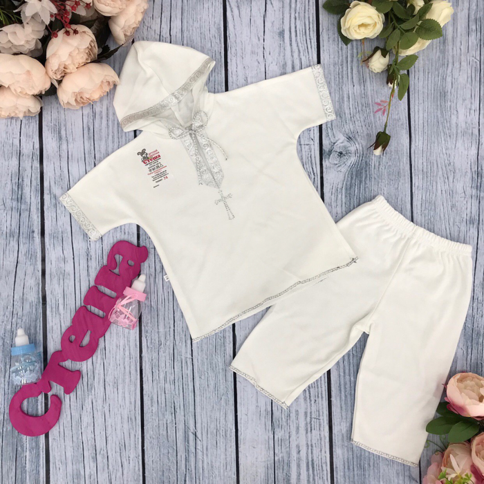 215-С. Крестильная рубашка со штанами (серебро), интерлок 62,68,74,80